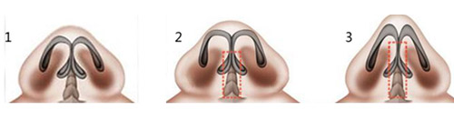 鼻小柱过宽:在鼻孔内缘将新月形的过多组织切除,同时将两侧鼻翼软骨内侧拉拢缝合,使鼻柱宽度减少,同时增高鼻小柱的高度。