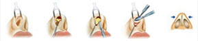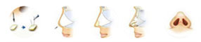 自体软骨隆鼻:将自身肋软骨经修整后埋入鼻背筋膜下面,使鼻梁或鼻尖突起。