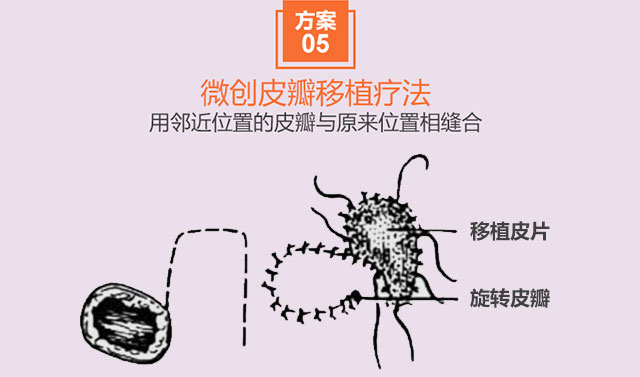 疤痕微创皮瓣移植疗法是利用微创手术,采用患者自身皮肤进行移植,来达到祛疤目的。皮瓣具有血液供应的皮肤及其附着的皮下脂肪组织,把疤痕组织病变位置切除,将邻近疤痕位置的正常皮瓣游离,不有效切断,后与原来疤痕位置进行减张缝合。