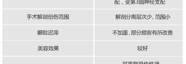 术后眉毛位置正常,避免了抬头纹;闭眼不全的程度低,且恢复到闭合的几率大大提高。