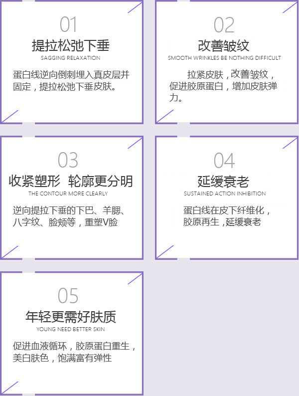 - 蛋白线拉紧皮肤组织,玻尿酸填充凹陷的面部组织部位,提供强有力的组织支撑力,重建饱满轮廓 我要立体轮廓